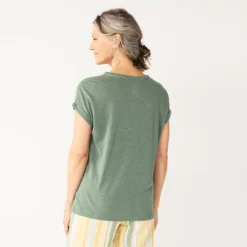 Women’s Croft & Barrow Lace Trim Linen-Blend Tee